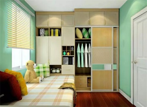 衣柜的柜门一般有两种选择:推拉门或者平开门,这要根据卧室的面积来决定。